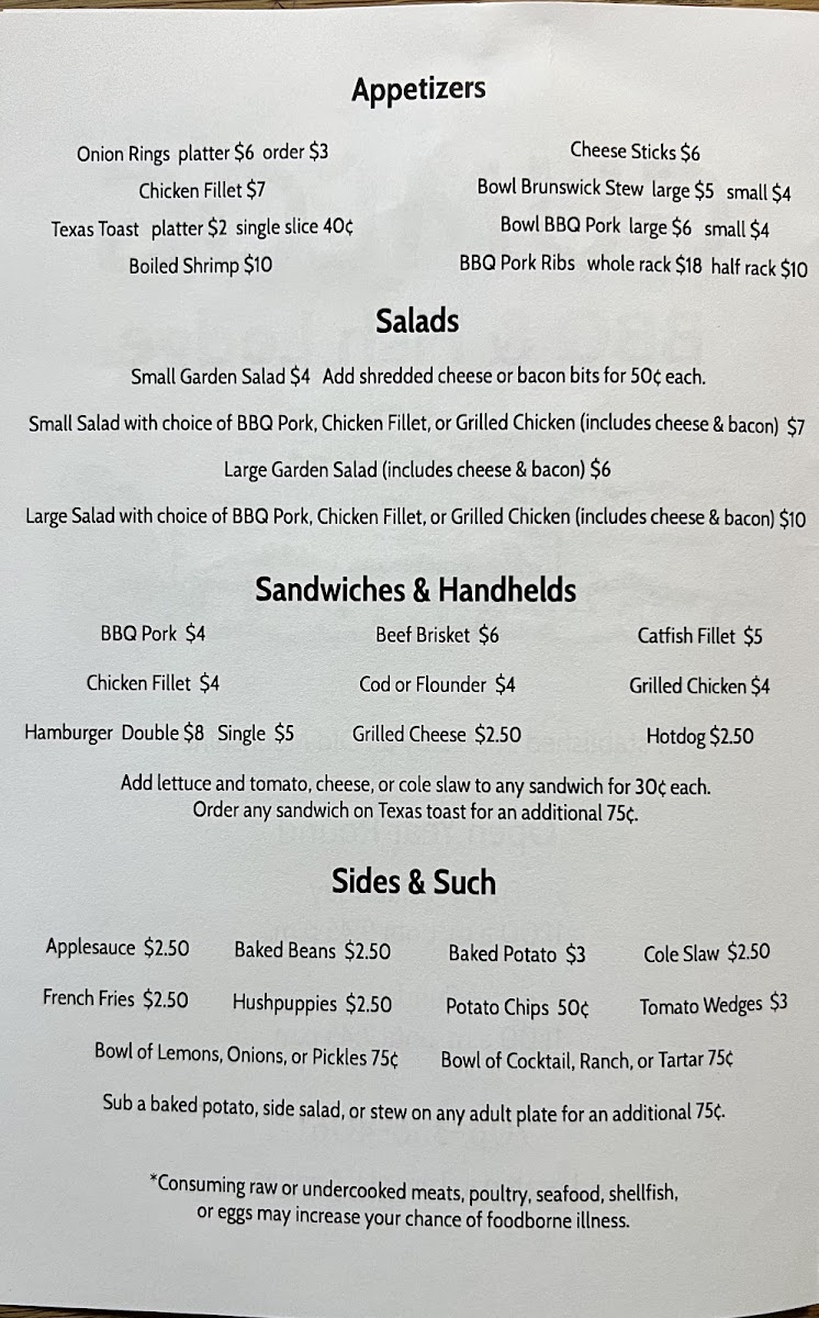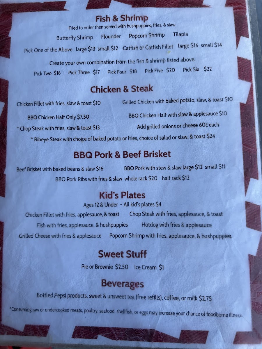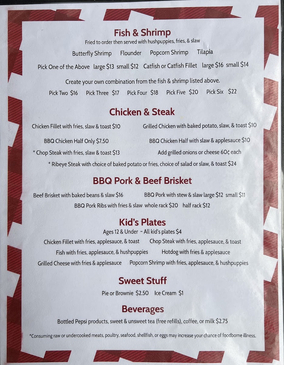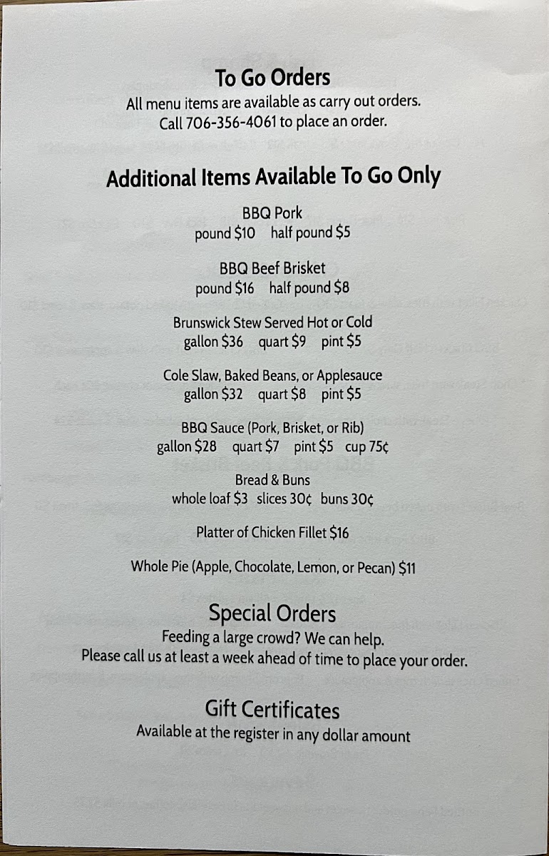 What sets this menu apart is its consistency and dedication to flavor. There are no pretentious dishes or overcomplicated presentations - just honest, hearty food served in a welcoming environment. Whether dining in or ordering takeout, customers can count on reliable quality and familiar favorites. The Gumlog Bar B Que & Fish Lodge Menu is ideal for families, road trippers, and barbecue purists alike, offering a deeply satisfying taste of Georgia’s culinary heritage.